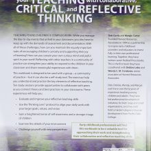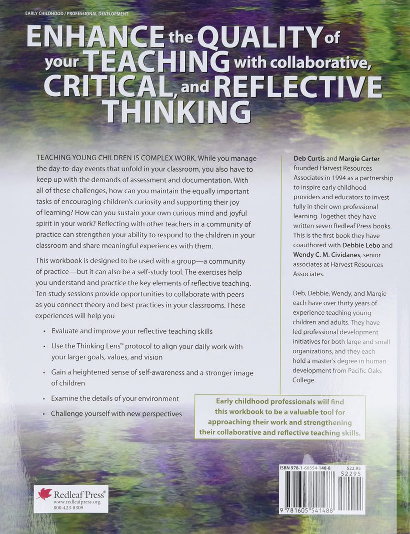 Reflective teaching—a continuous cycle of observing, documenting, and planning—supports children’s learning and strengthens your teaching skills. Reflecting in Communities of Practice, a professional development workbook, will help you cultivate your creative, critical, and reflecting thinking skills through ten study sessions. Each session includes guided activities that focus on topics related to understanding the value and key elements of reflective teaching.