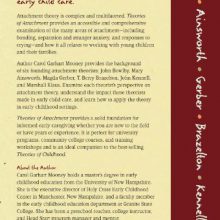 Theories of Attachment will enable you to understand practices for the best care of young children by familiarizing yourself with attachment theory. Ideal for all early childhood professionals, whether you are new to the field or have years of experience, this book provides a solid foundation for informed early caregiving. Learn how to better support babies by understanding key elements of attachment such as bonding, infant care, separation, and crying.